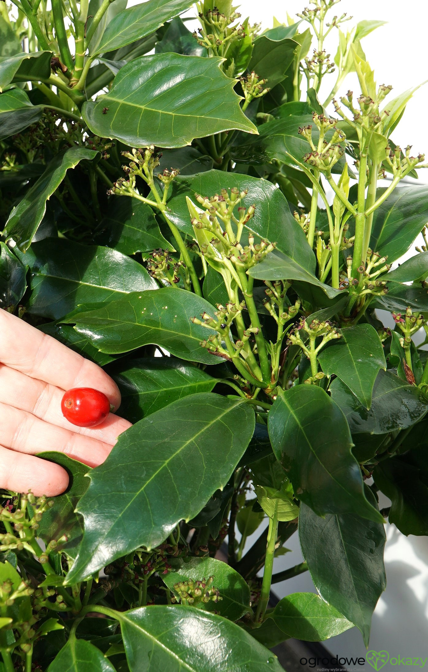 - bardzo dekoracyjna i ciekawa odmiana aukuby, o pięknym liściu i fantastycznych owocach